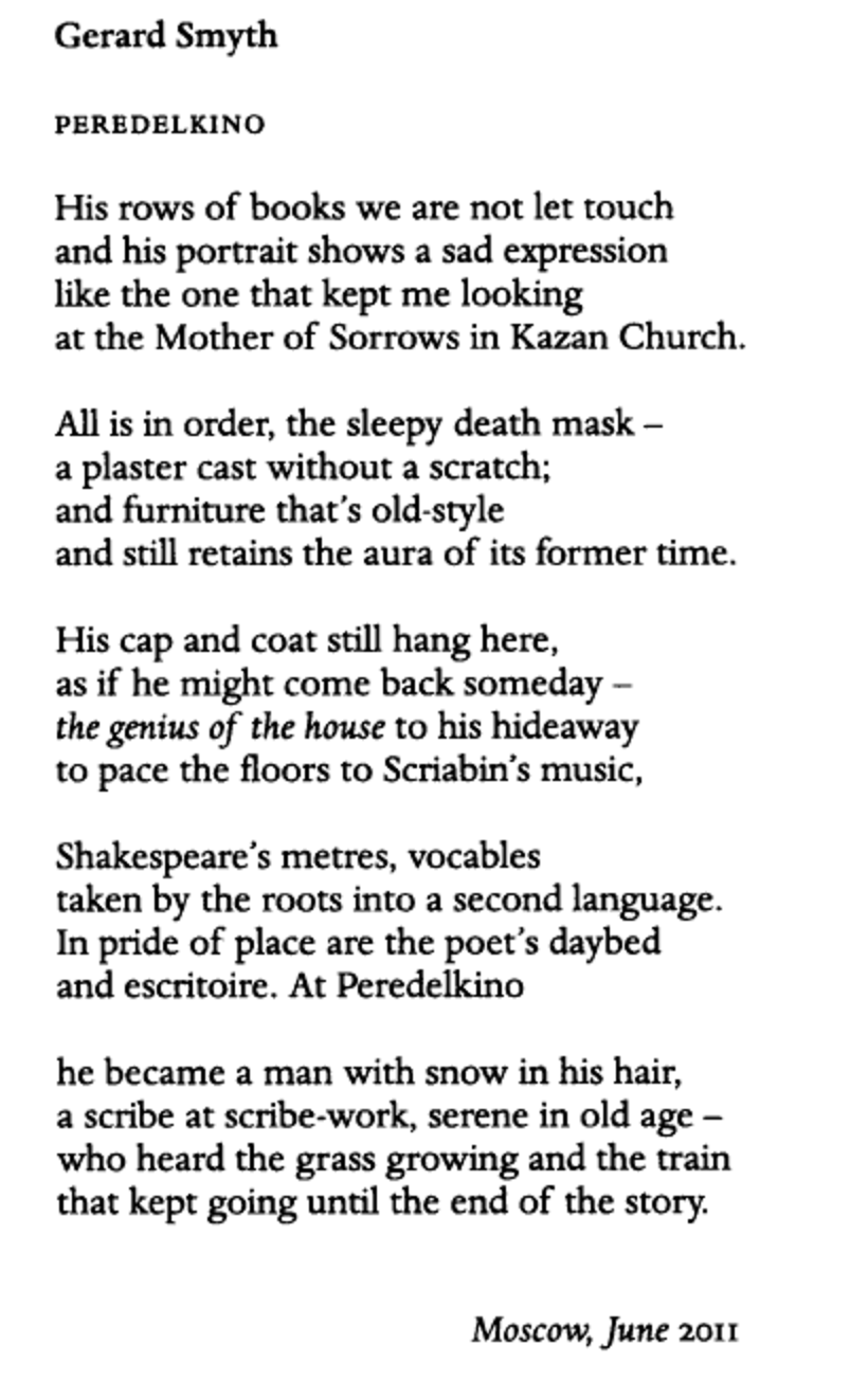 Poem by Gerard Smyth in 2011 highlighting the importance of literature in the Peredelkino dachas
