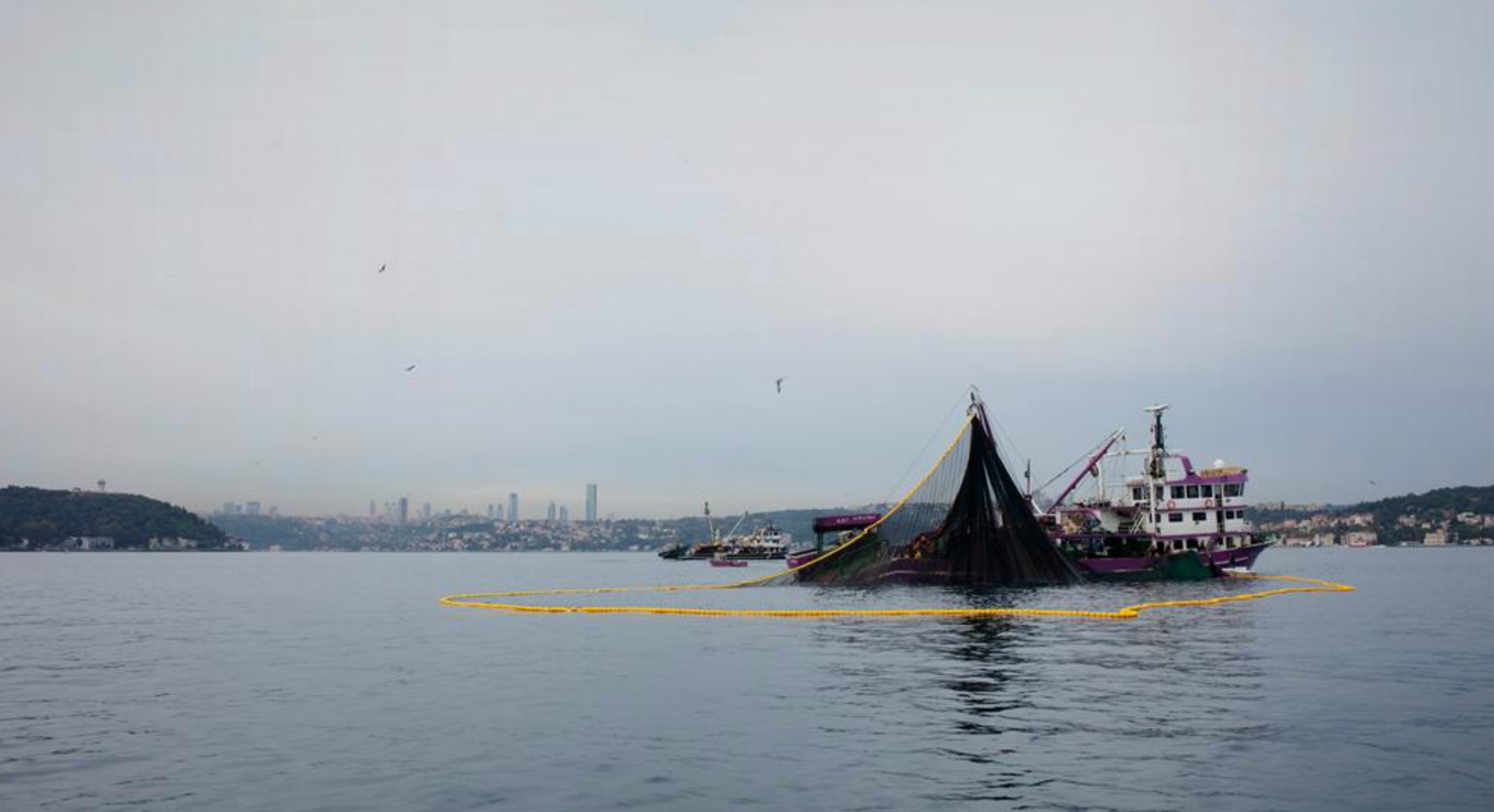 A fishing boat reeling in its catch on the Bosphorus
