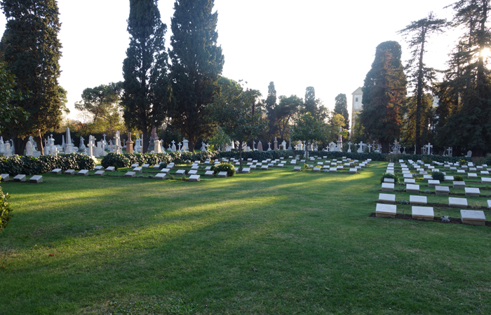 This is a picture of the Hydarpasa Cemetery where many soldiers from the Crimean War, World War I, and World War II were buried.