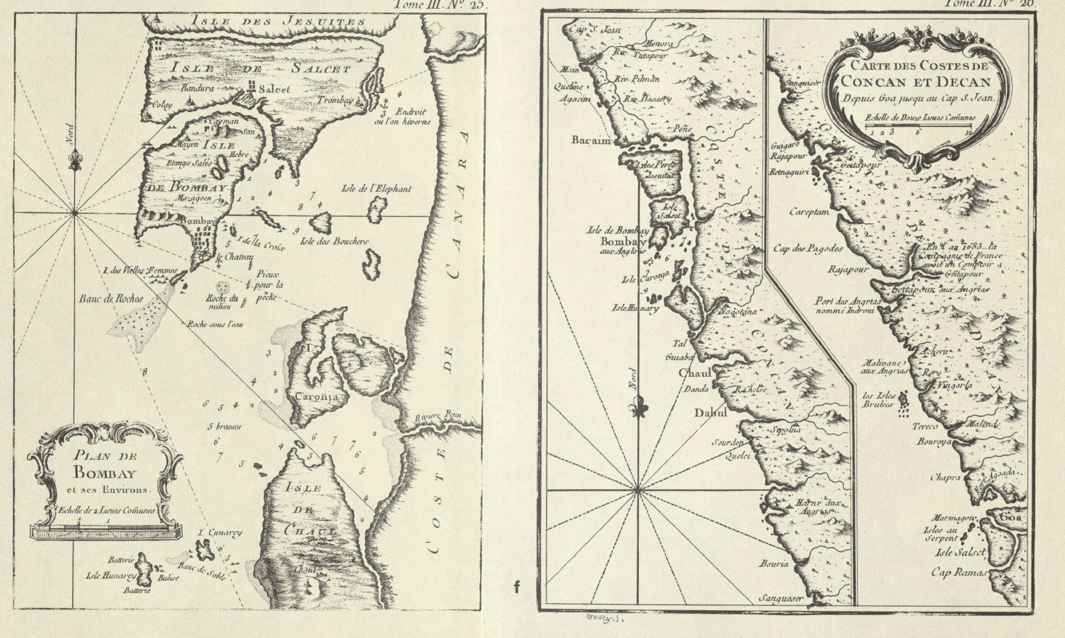 i. The chosen map is one made by the navigator Captain Jacques Nicolas Bellin (1703-1772) in 1764 and was published in 1980 in the atlas compiled by Susan Gole in New Delhi of “Early Printed Maps of India.” We will focus on the leftmost map titled “Plan de Bombay et ses environs.”