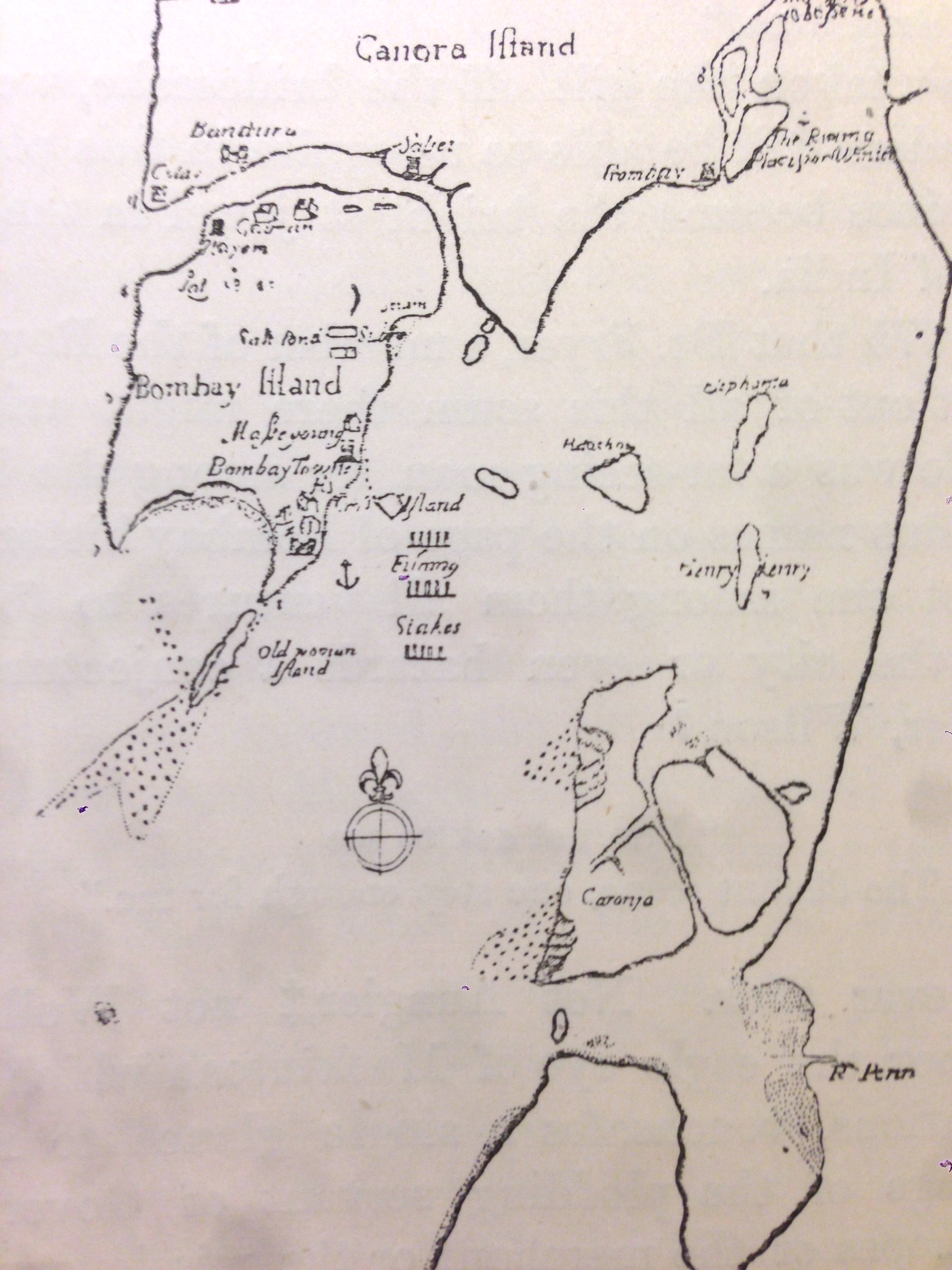 -Fryers map of Bombay, 1675 -Niebuhr's Map of Bombay 1764 -"Dickinson's Map of Bombay, 1812-16, with land reclamations since 1816" (Douglas xvi)