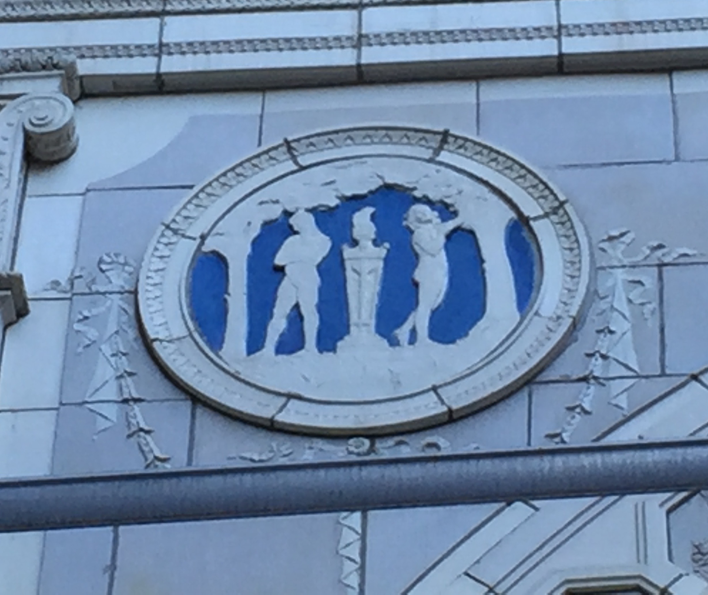 The second artwork reminiscent of the theatre's early era. The artwork display's Adam and Eve on either sides of the Harvard Musical Association seal, the founders of humanity and of the Hall respectively.