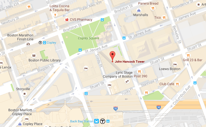John Hancock Tower located within a map, with a look at what immediately surrounds it.