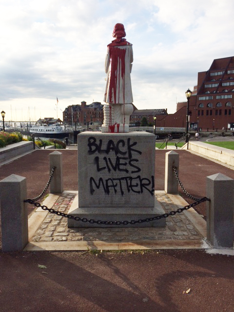 Christopher Columbus Statue Vandalized with “Black Lives Matter”